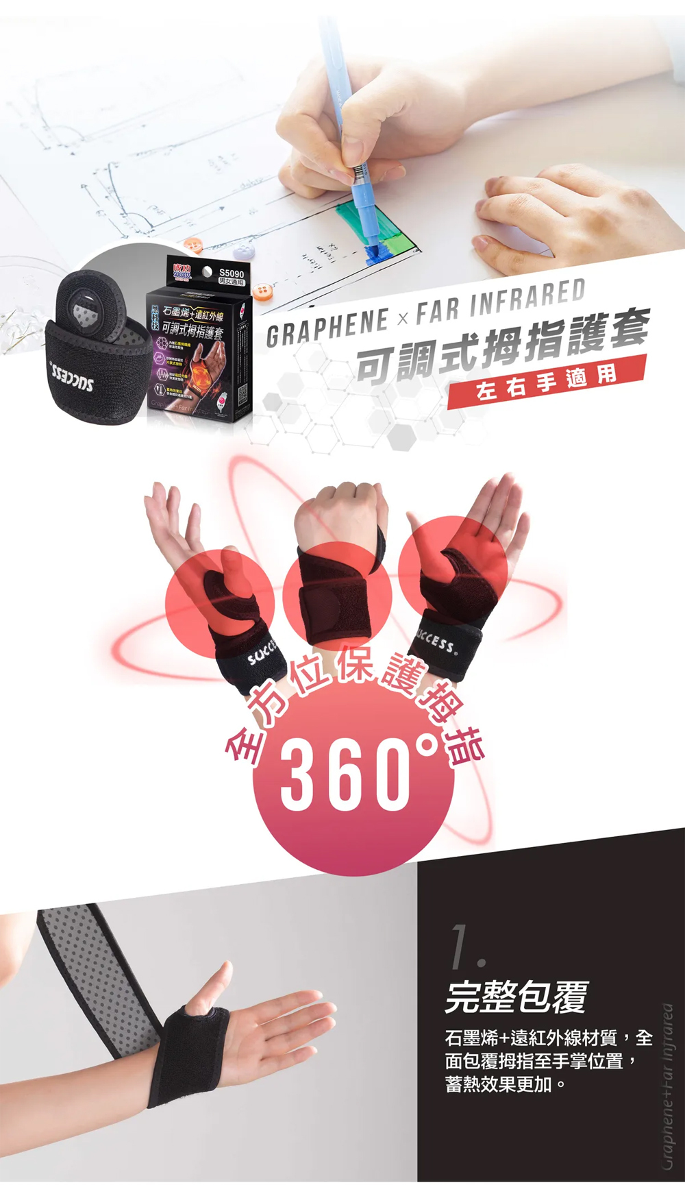 石墨烯+遠紅外線可調式【拇指護套】(左右手共用)