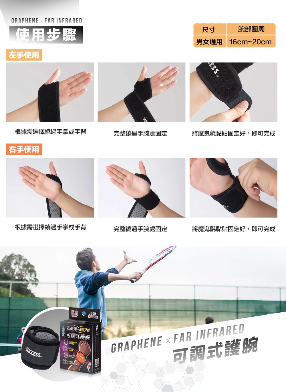 石墨烯+遠紅外線可調式【護腕】(左右手共用)