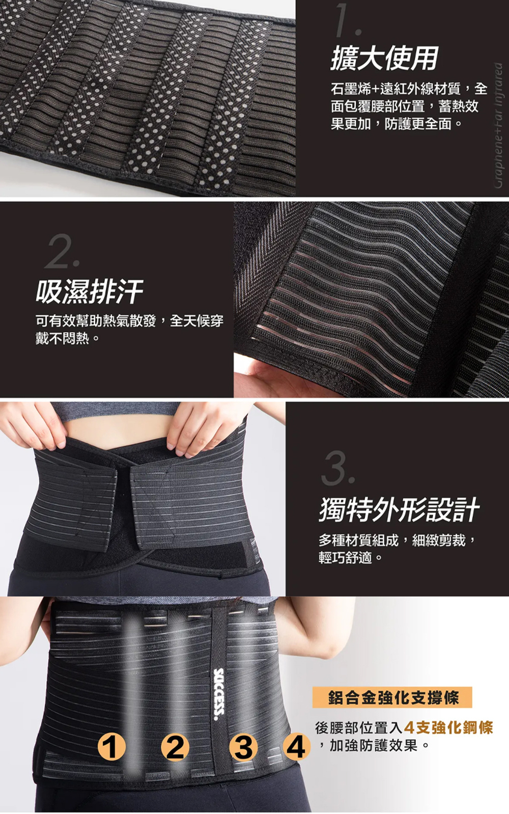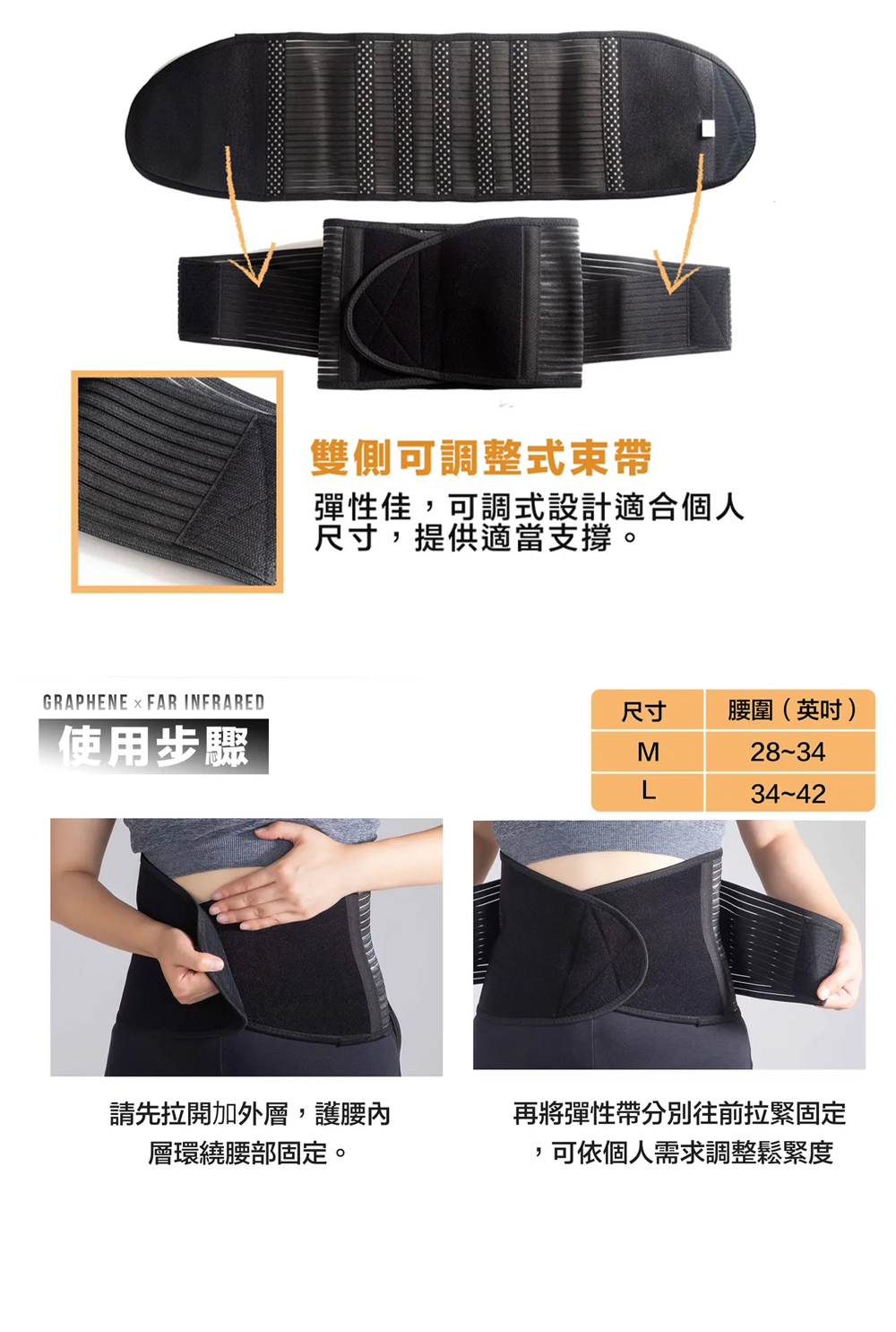 石墨烯+遠紅外線材質,全面包覆腰部位置,蓄熱效果更加,防護更全面。