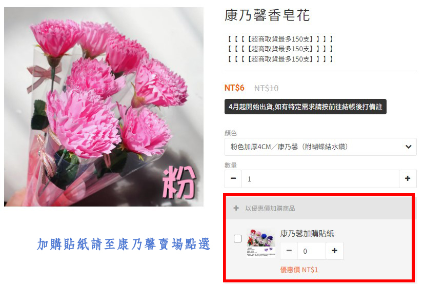 買康乃馨加購貼紙1張1元